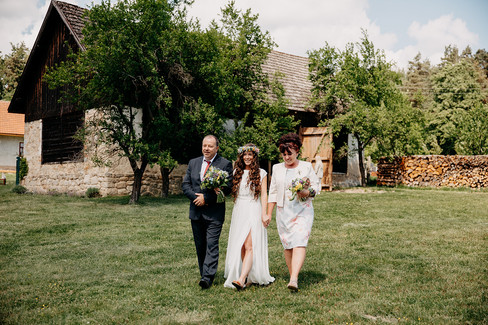 Když v životě narazíte na stejně naladěné lidi je to vždy velká paráda. A tady ta atmosféra byla neskutečná už od rána. Úsměvy od ucha k uchu, klid a pohoda. Nádherný areál uprostřed přírody v podobě bývalé zemědělské usedlosti. Kolikrát jsem se dojala během dne ani nepočítám, ale rozhodně to bylo vícekrát než obvykle. Místo: Samota Křemen Catering: Filda cook.catering Šaty: Sandra Švédová